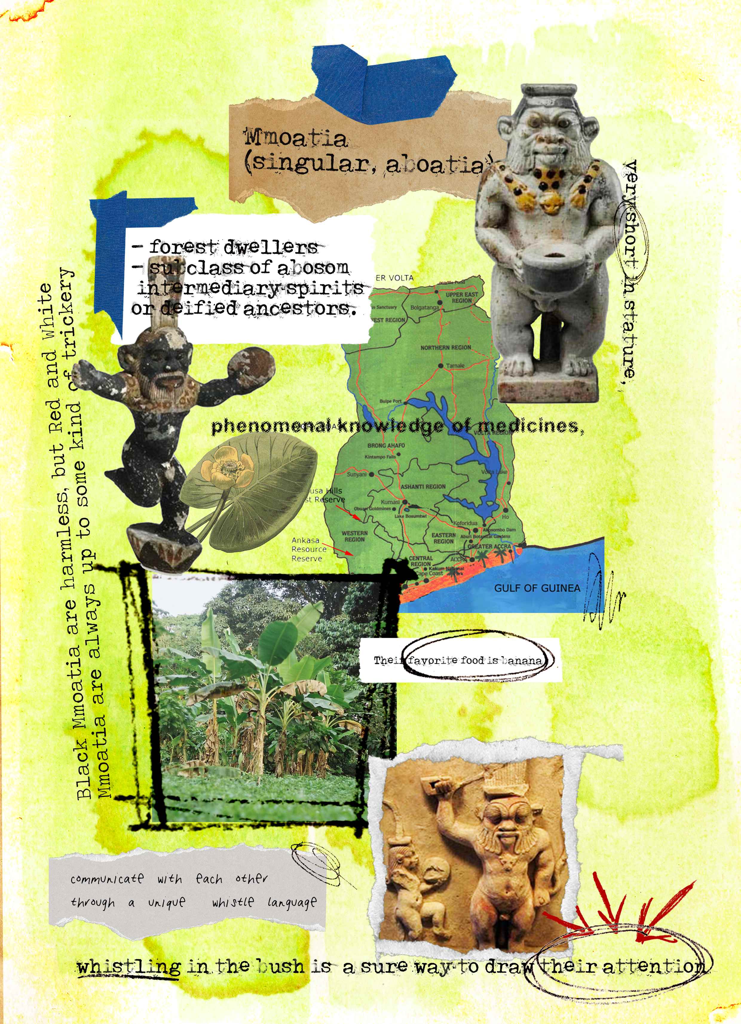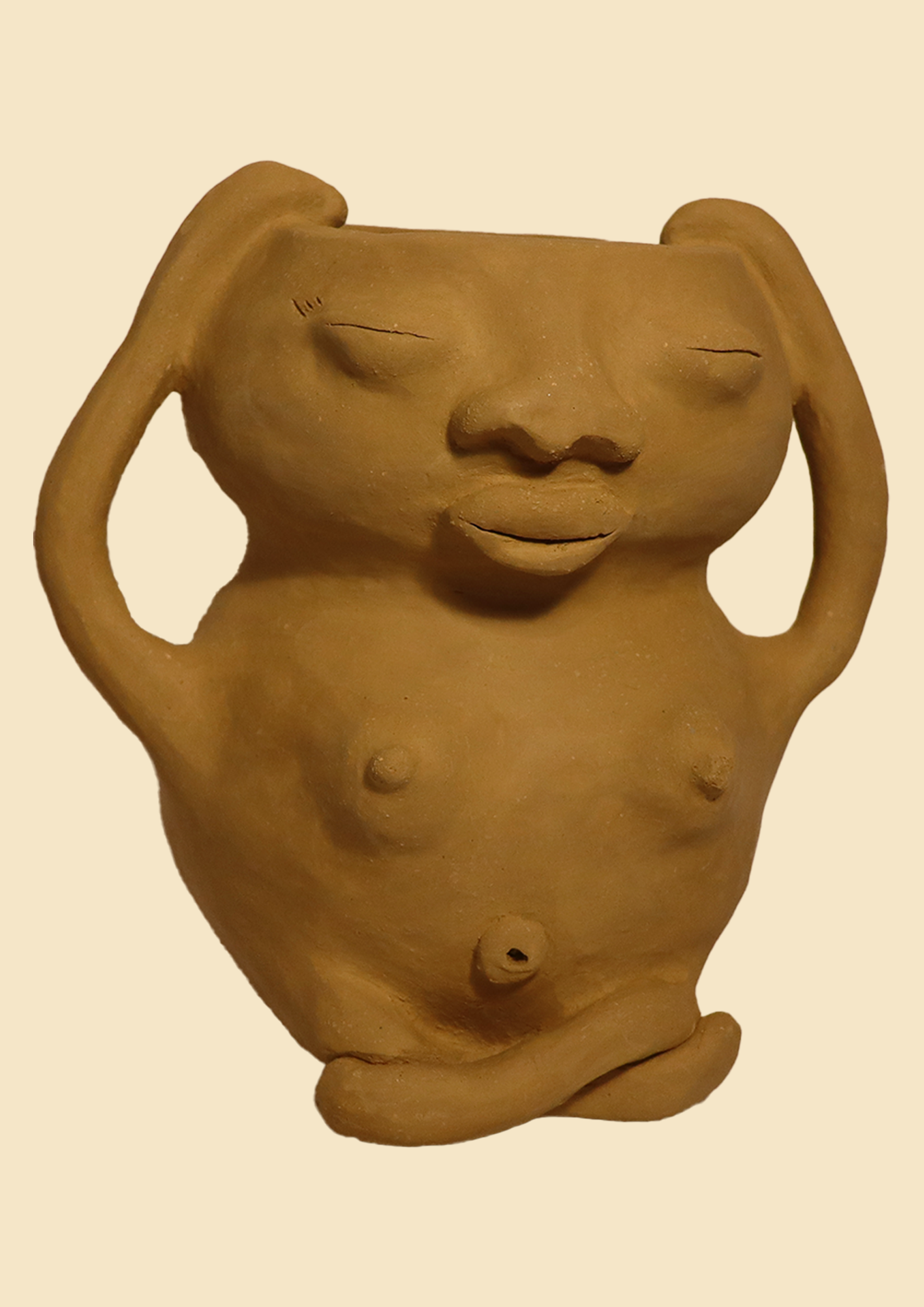 I create hand-built clay works using terra cotta, a material that recalls the red earth of Ghana. These sculptures explore mythological figures, particularly within an ongoing series on Mmoatia – The Helper. The works engage with ancestral knowledge systems, including herbal healing practices, food culture, and relational approaches to land and ecology.