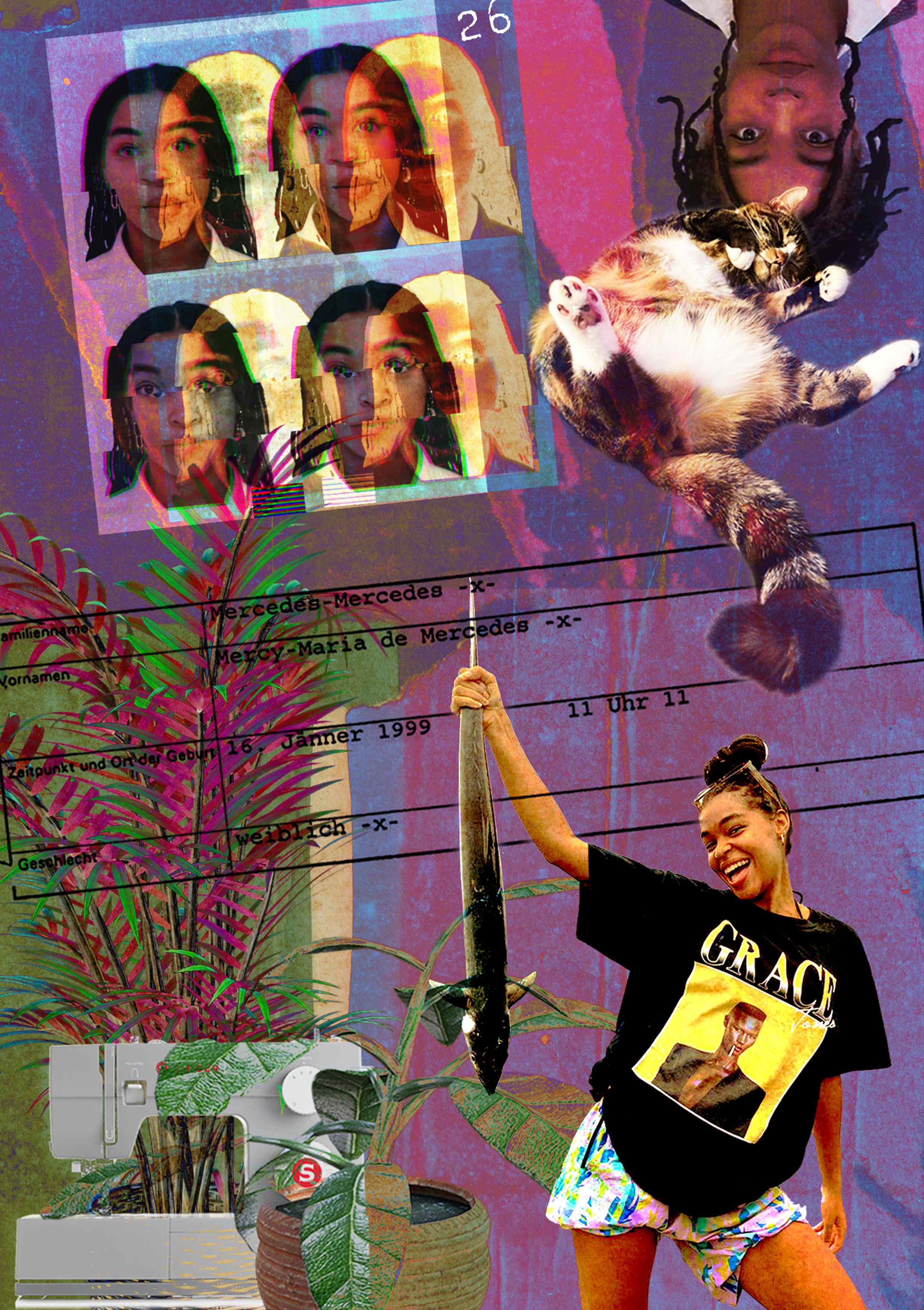 I work with collage as a language of multiplicity and assemblage, bringing together fragments to form new wholes. Using found materials from books, postcards, and magazines, alongside hand-painted elements, photography, and digital sources, my collages mirror lived existence as layered, relational, and made up of many coexisting realities within a single image.