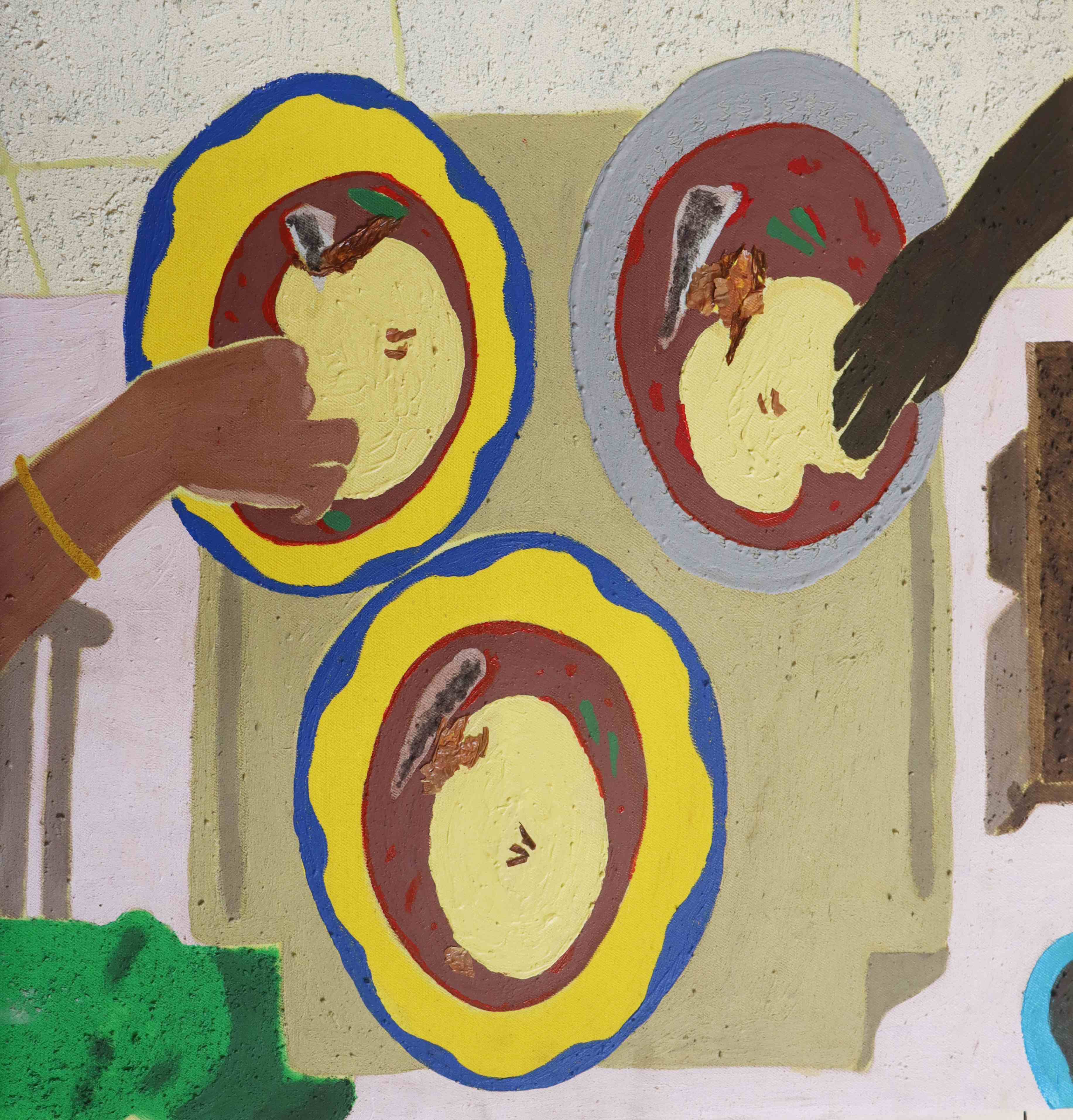 My paintings depict scenes from my daily life, transforming lived moments into earth-based, colourful visual narratives. I work with self-made pigments derived from natural materials sourced from my immediate environment, allowing the material origins of the work to remain present and visible.