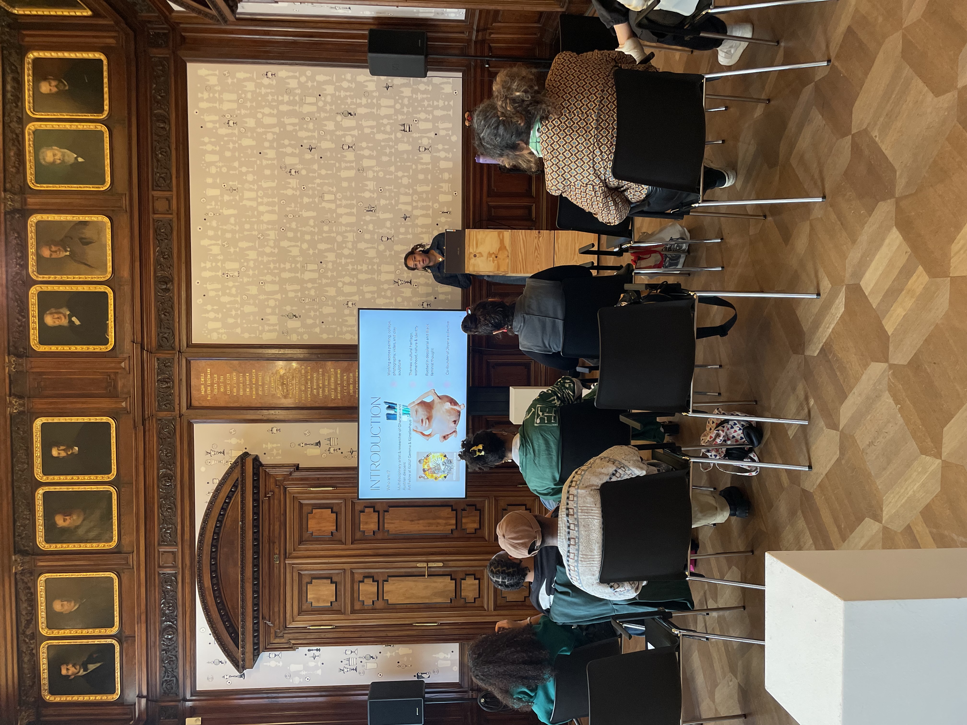 Her work has been exhibited in Accra, Amsterdam, Berlin, and Vienna, and continues to evolve as she experiments with new materials and techniques.